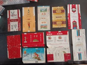 《银杉、美乐、金丝猴、中华、公主、天池、淮海、云龙、彩光、醒宝、郴州香烟 烟标》10张拆包烟标(10种)