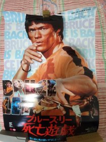 日版上世纪早期李小龙主演电影海报《死亡游戏》,1978年绝版。此片1973年拍摄中李小龙猝死,未完成,1978年香港补拍上映,未在中国内地上映,罕见。