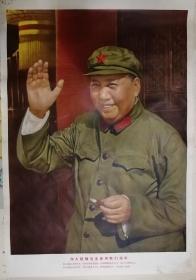 中国经典年画宣传画电影海报大展示---60年代宣传画----《伟大领袖毛主席向我们招手》---2开--虒人荣誉珍藏