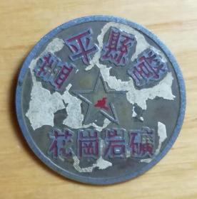盖平县营花岗岩矿证章——五十年代徽章校徽证章奖章纪念章类。 今辽宁省营口市盖州市,盖州市辖6个街道、21个镇:古楼街道、西城街道、东城街道、太阳升街道、团山街道、西海街道、高屯镇、沙岗镇、九垄地镇、九寨镇、万福镇、卧龙泉镇、青石岭镇、暖泉镇、归州镇、榜式堡镇、团甸镇、双台镇、杨运镇、徐屯镇、什字街镇、矿洞沟镇、陈屯镇、梁屯镇、小石棚乡、果园乡、二台乡。