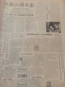 《浙江科技报》【仙居发现“佛肚竹”;畲乡第一个稻田养鱼村(景宁县张春畲族乡);温岭县沙山乡照片;(安吉县)三官乡第一林场林粮套种每亩净收一百三;定海县紫徽乡天童村蔬菜专业户黄均祥照片】