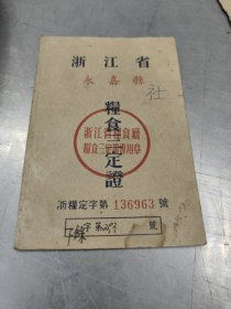 浙江省永嘉县粮食三定证