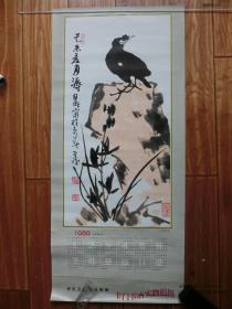80年代老年历画宣传画类:1980年年历画 讲究卫生预防疾病 李苦禅画 (77*34.5厘米)