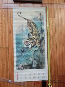 80年代老年历画宣传画类:1984年年历画 《虎啸图 沈高仁画》(76.7*34.4厘米)
