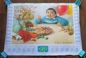 70年代老年历画宣传画类:1977年年历画 农历丁巳年 约4开大小(53*38.1厘米)