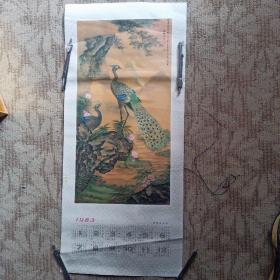 1983年年历画孔雀图,清·沈铨(老年画挂画)