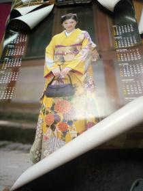 【大长墙画-8】怀旧墙画挂画海报年历画看图,日本和服美女模特2001年,72*102【老物件,边角有瑕疵,完美主义者慎拍哦】