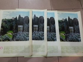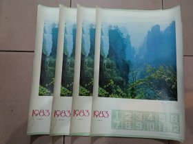 四开1983年年历画4张一起出,金鞭岩,老供销社库存,价格不高
