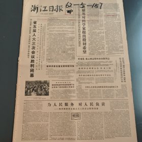 八十年代原版老报纸浙江日报浙江省第五届人民代表大会第三次会议胜利闭幕复旦大学谭其骧革命烈士茅丽瑛纪念鲁迅百岁诞辰萧山县河庄公社全国物资战线劳动模范舟山地区三八红旗手舟山海洋渔业公司许凤莲海盐县饲料公司沈文祥杭州电解电容器厂温岭草编厂衢州瓷厂莹白瓷江山工艺厂余杭县塘栖枇杷萧山塑料厂武义县壶山粮市杭州群英无线电厂杭州永新化工日用品厂奉化涤棉黄岩县化学研究所