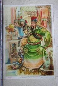 80年代年画/宣传画,关公夜读,张瑞恒作,1983年8月天津人美一版一印,对开