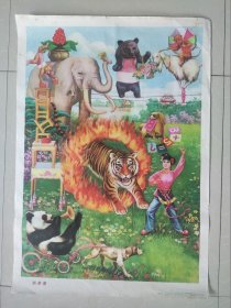 《驯兽图》2开年画、宣传画,1983年一版一印