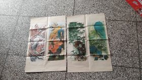 1983年2开2幅宣传画年画:梅兰竹菊, 上海人民美术出版社出版,大画家 张广力创作,相当于4条屏,太美了,有折痕,折叠或者卷轴邮寄
