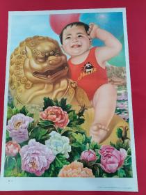 1983年河南出版对开年画宣传画,《骑士》,品相好,稀缺性强,胖娃娃穿的背心有多少人小时候穿过,哈哈。300包邮