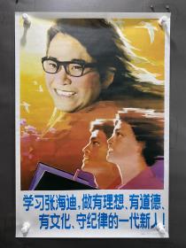 学习张海迪做有理想有道德有文化守纪律的一代新人 对开宣传画年画 1983年人民美术出版社 218元