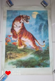 80年代老年画老宣传画:《月夜虎啸》沈高仁作 1983年1版1印(全开一张, 106*76厘米)【包老保真】