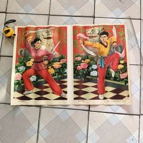 1983年宣传画年画 体坛涌新秀 武术现英姿 2开尺寸 品相如图,1983年云南美术出版社