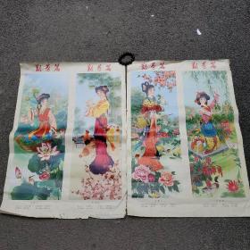 1983年2开四条屏年画 宣传画: 扇面集锦 【2张合售】77 × 52.5 cm