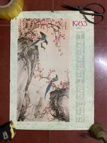 4开-----1983年年历宣传画-----人间春----溥佐绘画--少见精美