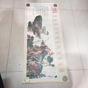 1983年宣传画年历画: 翠阁飞泉《溥心畲作》单张年历(77*35)