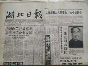 长江日报 1996年2月28日。【内容:内蒙古发现罕见的战国时期文字及印戳。情暖大别山——记湖北省军区驻红安小康工作队 等】。原版老报,私藏物品。