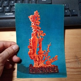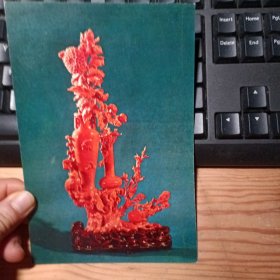 工艺美术活页卡片:《藏族饲养员(黄杨木雕)、珠玛绿扁豆瓶(玉雕)、梅花瓶(珊瑚)、菊竹(浏阳菊花石雕)、提蓝 草垫(麦秆编)、丰收瓶(花丝银篮)、陶马(仿唐三彩)、金鱼(苏州双面绣)》共8张