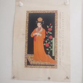 单页挂历年画缩样10枚合售,蝴蝶泉边,牡丹仙子,多逊维尔伯爵夫人像,电影演员刘晓庆,中国画名作齐白石葡萄,半屏山剧照,舞剧文成公主剧照两张,文君听琴,亚洲妇女