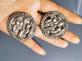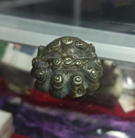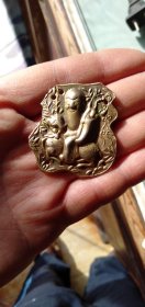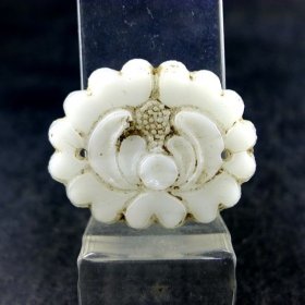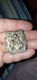 古玩旧藏清代琉璃仿玛瑙连生贵子帽花 没有十年地皮经历看不出这是琉璃仿的帽花!整体模具成型,手工雕刻细节,长3.1宽2厚0.4厘米,全品相!(边缘及洞的地方些许很小磕皮在所难免的,不计入瑕疵范畴)