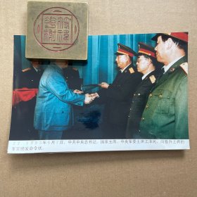 彩色老照片:1993年6月7日,中央军委举行仪式,晋升总参谋长张万年,总政治部主任于永波,总后勤部部长傅全有,国防大学校长朱敦法,海军司令员张连忠,空军司令员曹双明6位高级军官上将军衔