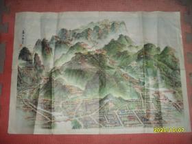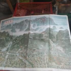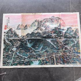 旧地图旅游图 1985折装彩图 泰山揽胜 登泰山路线图