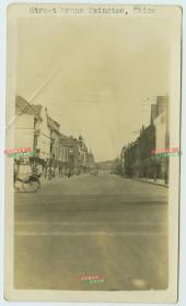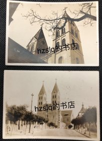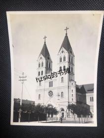 民国山东青岛浙江路街景,以及天主教圣弥爱尔大教堂老照片 ,浙江路在德国占领时期称为芦坡街,位于欧美人聚居的青岛区,日本占领时期改名高濑町。8.4X5.7厘米