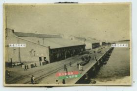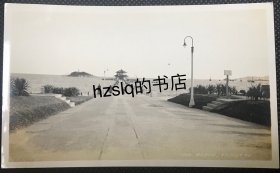 民国山东青岛栈桥全貌老照片,尽头处是飞檐式八角仿古亭榭~回澜阁。11.2X6.6厘米。此处是青岛最早的军事专用人工码头建筑,画面有左侧远端是小青岛灯塔。