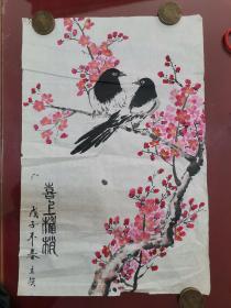 国画、喜鸟登梅