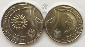 日月神 牛币 摩尔多瓦2018年最新版1-2列伊硬币2枚一套 全新UNC