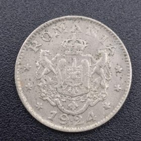 (百年老币)罗马尼亚1924年斐迪南一世2列伊硬币1枚,尺寸25mm,100多年的老物件,值的收藏。品相如图。