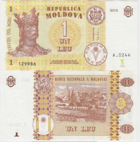 摩尔多瓦2015年1列伊纸币,全新UNC外国纸币P-8