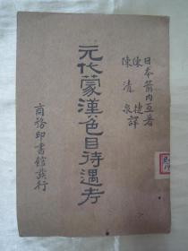 稀见民国初版一印“精品史学著作”《元代蒙汉色目待遇考》,【日】箭内互 著;陈捷、陈清泉 译,32开平装一厚册。“商务印书馆”民国二十一年(1932)十二月,初版一印刊行。版本罕见,品如图!