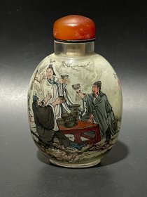 旧藏:琉璃内画【桃园结义图】鼻烟壶规格:高7.9cm 宽5cm 重58g