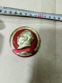 毛主席像章( 初设计时试做的半成品样章,章不平整,且未上漆,章周围也没有切割成型。正面字:武汉钢工总抗暴纪念;背面字:武钢运输部革命委员会) 。 0280
