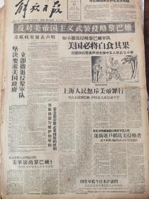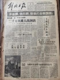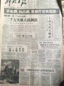 《解放日报》【站在世界前列,压倒美国英国,武钢一号高炉提前出铁,有照片;王炳南大使返抵华沙;我国机车制造踏上新阶段的标志,内燃电动机车诞生,车厢设备现代化全部操作电气化(长辛店机车车辆修理厂)】