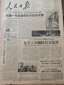 《人民日报》【武钢一号高炉提前为祖国效劳,有照片;河南省信阳市的家庭妇女也参加到炼铁的行列里,有照片美舰一艘又侵入我领海掩护蒋舰,我政府第五次提出严正警告,炮兵以密集火力打得蒋舰带伤逃窜】