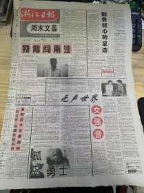 《浙江日报 周末文荟 1995年8月26日/第87期/第一版至第四版》独臂闯南沙:卢跃刚/无声世界女强音:陈清贫、黄耀琴/刻骨铭心的采访:刘黄/孤岛勇士:王同业/"窗口"一日掠影:王千钧/好企业也可拍卖/落榜不落志 有志事竟成/水库是企业:金衢考察札记之七:厉德馨/城乡生活热点换位:陈军/一个亟待提高的工程——母亲的素质/梦想成真——记杭州市高考文科[状元]陆静斐........