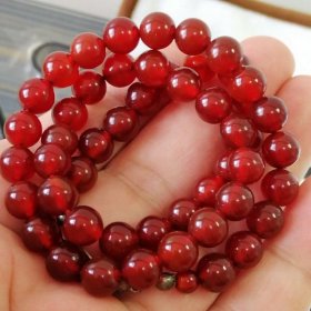 9850号,老藏民家收的 老藏传【正宗酒红玛瑙项链】 包浆古旧 表面光泽亮丽 极为漂亮 质地丰润 雍容浑厚 重36克 佩戴正合适 民族特色浓郁 极为少见 雅玩珍品【真正的酒红玛瑙】