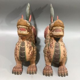 50_解放前后,核桃木,大座面,太师椅一对,满工雕刻图案精美绝伦,麒麟望月,大吉之天象:麒麟寓意瑞兽吉祥,望月表示对美好事物的向往,使用收藏摆设,完美极致。