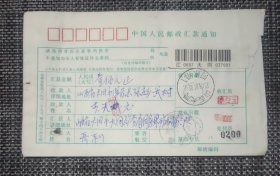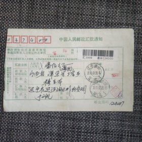 百家姓专题汇款单bjx54:2001年1月31日辽宁辽阳寄山西浑源(辽宁辽阳小祁家邮戳)