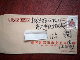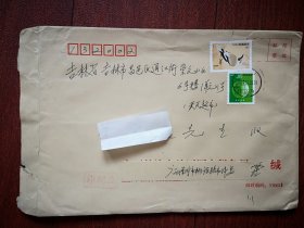 实寄封(邮简),贴普31中国鸟1元邮票三枚,普30保护家园60分邮票两枚,呼和浩特土默特左旗白庙子至吉林市通江街,2009年10月23日蒙文汉文对照邮戳。阜丰生物科技公司黄原胶厂