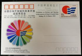 邮资片:JP35"全国沿海开放城市改革开放成就展览会"(单枚套,全,1993)
