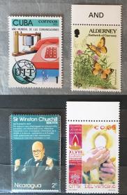 外票4枚: 电话机+蝴蝶+丘吉尔+宗教圣餐会 单枚4元