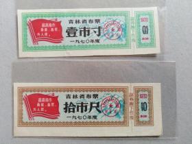 70年吉林布票1寸、10尺