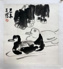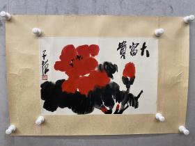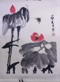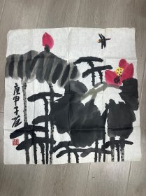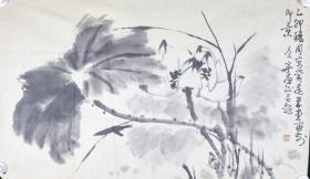 某画院旧藏六七十年代书画作品:著名画家、李苦禅弟子、范曾同门 康宁 乙卯年(1975)国画作品《墨荷》一幅,(纸本软片,约5平尺,钤印:康宁)HXTX325652