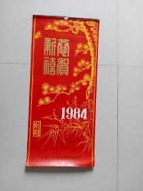 1984年挂历:恭贺新禧名家国画(13张全),76✘34·5厘米